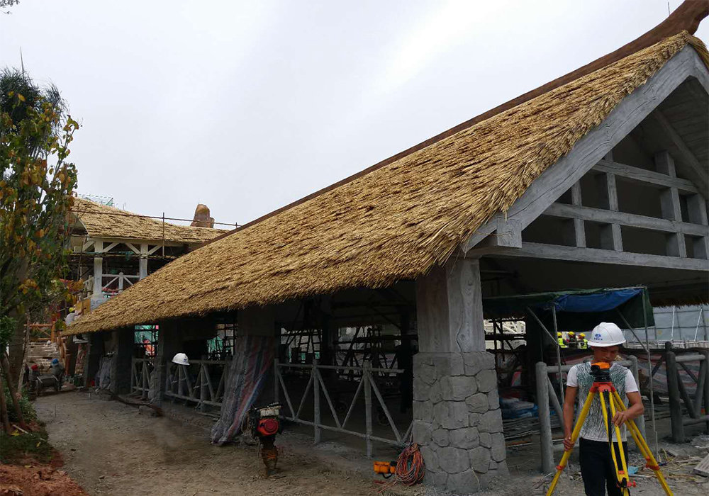 ? ? ?6. ?仿真茅草安裝簡單,省時省量,安裝后沒有維修和更換的工作量,是仿天然茅草屋頂最理想的裝飾材料。