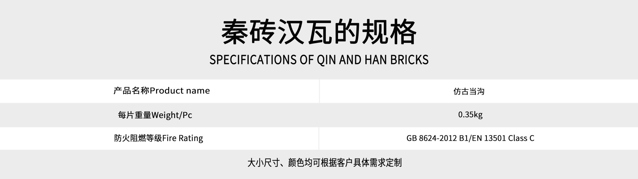 ? ? ? ? 仿古秦磚漢瓦是深圳市科佰工貿(mào)有限公司采用目前國際上先進的納米合成高分子改性樹脂,高強纖維,納米空心微珠等材料為主原料技術(shù)和工藝生產(chǎn)。采用科學(xué)的配方和先進的生產(chǎn)工藝,自動化流水線生產(chǎn)的新型環(huán)保屋面產(chǎn)品。利用納米粒子的特有的物理化學(xué)性質(zhì),使得其具有更加優(yōu)異的耐候性及阻燃性,能滿足美國ASTM-G154-06 抗UV老化測試標準,并能通過美標UL94-V0級阻燃,在國內(nèi)仿古秦磚漢瓦也通過了國家防火建材阻燃測試B1級。?